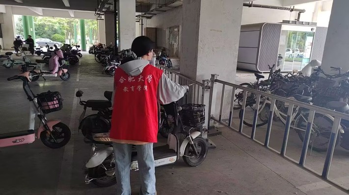 同時(shí)于4月25日至30日,教育學(xué)院志愿者在香怡生活區(qū)、校園七棟公寓及竹苑區(qū)域開展“文明停車”專項(xiàng)行動(dòng)。 志愿者將凌亂的電動(dòng)車、自行車推至劃線停車區(qū),并按照“車頭朝外、間距一致”標(biāo)準(zhǔn)整齊擺放;同時(shí)志愿者認(rèn)真引導(dǎo)同學(xué)們有序停車。