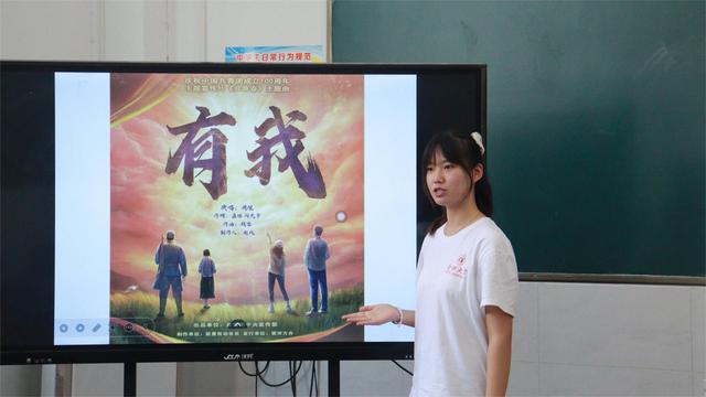 “在青春歲月里,我們應該承擔什么責任?”教師拋出話題,讓學生思考:什么是青春?青春和責任之間有何種聯(lián)系?為理解歌曲思想內(nèi)涵打下基礎。隨后,教師播放童聲合唱團《有我》合唱視頻,引導同學們感悟歌曲的旋律、結構及情感表達,體會歌曲中的情感力量,激發(fā)情感共鳴。 “以史串歌,以歌敘史”,接下來,教師圍繞“我是寸土不讓的家鄉(xiāng)”、“我是絕不低頭的倔強”、“來自世間一對平凡的夫妻身旁”等歌詞重點闡釋,用喜聞樂見的方式講述歌詞中一代代共產(chǎn)黨人頑強拼搏,不懈奮斗的光輝事跡,讓同學們感悟中國共產(chǎn)黨人在長期奮斗中構建起的的精神譜系。教師鼓勵同學將所學知識運用到學習和生活中,以革命先輩為榜樣,努力學習,為實現(xiàn)中華民族的偉大復興貢獻自己的力量。最后,在教師的帶領下,同學們合唱歌曲《有我》,本次音樂黨課在歌聲中圓滿結束。