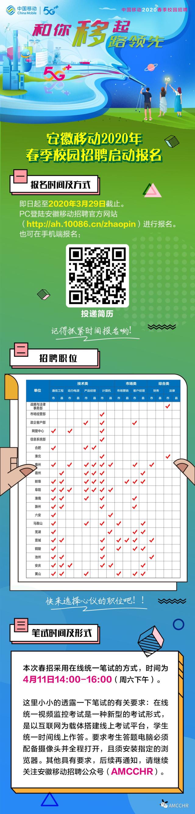 [抗疫情+促就業(yè)] 安徽移動2020年春季校園線上招聘