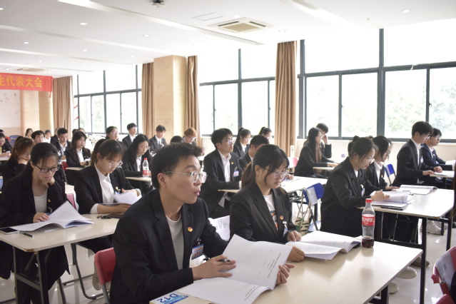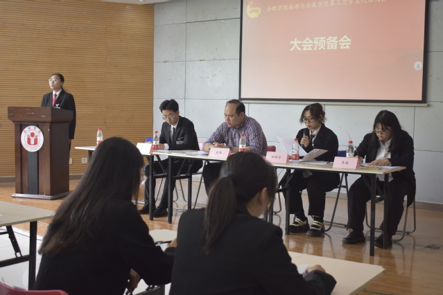 大會第一項,聽取學代會籌備工作報告,強調要重視基層民主,廣泛征求和聽取意見,嚴格資格審核。大會第二項,審議通過《旅游與會展學院第三次學生代表大會代表資格審查報告》。大會第三項,由杜宣陽宣讀大會主席團成員名單(草案)和大會秘書長、副秘書長名單(草案),學代會全體代表予以審議并通過。大會第四項,審議通過大會主要議程(草案)。大會第五項,由院團委負責人戴路講話,希望各位學生代表能廣泛聽取學生建議,將匯總的提案反映給所在代表團。同時要正確履行代表的權利和義務,學代會期間認真配合審議工作。至此,會議圓滿結束。