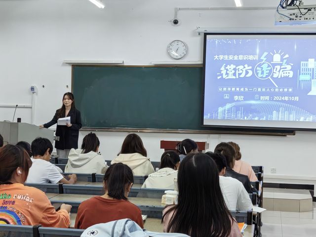 首先李欣向同學(xué)們講述了開學(xué)校園詐騙的頻發(fā)以及一些典型事例,并向同學(xué)們講述了詐騙的各種類型,像網(wǎng)上刷單、校園貸、或者是購物詐騙,詐騙分子以低價(jià)誘惑學(xué)生卻在付款后消失無蹤、又或是兼職詐騙,利用學(xué)生想賺取生活費(fèi)的心理,騙取所謂的“押金”“手續(xù)費(fèi)”,并且提醒所有新生要時(shí)刻保持防范意識(shí),對(duì)不確定的信息要經(jīng)過多方核實(shí)和確認(rèn),告誡同學(xué)不要輕信陌生人的話時(shí)刻保持警惕。隨后李欣向同學(xué)們講述了如何辨別詐騙電話和詐騙信息,并告訴同學(xué)預(yù)防詐騙的方法和措施,保護(hù)學(xué)生的財(cái)產(chǎn)安全,李欣提醒大一新生遇到可疑情況一定要與輔導(dǎo)員、家長或同學(xué)商量,或者直接向相關(guān)部門反映。