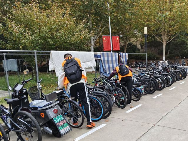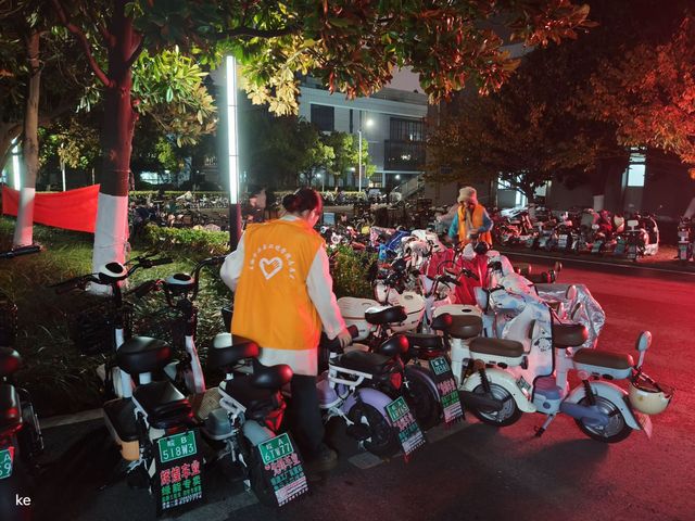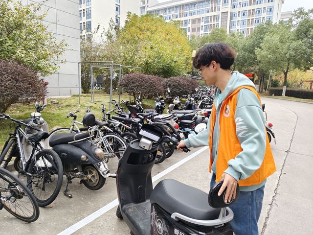 在校園的一些停車點附近,隨處可見生物院志愿者們忙碌的身影。他們將那些隨意停放的自行車和電動車整理擺放在合適的停車點,將不小心倒下的車輛扶正。在他們的努力下,宿舍樓下原本雜亂的停車區變得井然有序。同學們的出行變得更加暢通無阻,不再需要從混亂的車堆中艱難前行。消除了車輛亂停可能導致的安全隱患,為校園營造了更加安全和諧的環境,同時為校園文明建設獻出了一份自己的力量