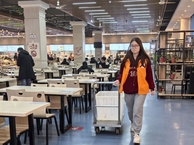 在食堂的衛生保障工作中,志愿者們發揮著重要作用。每日中午和晚上的用餐高峰時段,他們便活躍于餐具回收處,積極宣揚“光盤行動”理念,大力倡導節約糧食,提醒同學們按需取餐,避免浪費。同時,志愿者們還自發地清理餐桌,將用過的餐具整理歸類,為后續的清工作提供便利。他們耐心引導同學們文明排隊,有序就餐,有效維護了食堂的用餐秩序。在志愿者們的努力下,食堂環境得到了顯著改善,同學們也能在整潔、有序的氛圍中享受用餐時光。
