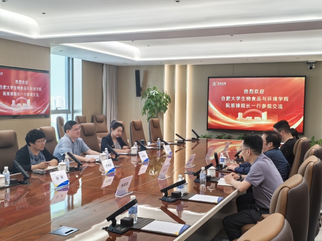 隨后,生物學(xué)院一行與安科生物公司集團執(zhí)行總裁姚建平、營銷中心兒科事業(yè)部副總經(jīng)理雷明等人在會議室開展交流。姚建平對生物學(xué)院一行的到來表示熱烈歡迎,并詳細介紹了公司的核心產(chǎn)品、主營業(yè)務(wù)、前沿科技以及產(chǎn)業(yè)布局等情況,并表示希望與合肥大學(xué)開展包括學(xué)生就業(yè)、科學(xué)研究等方面長期、穩(wěn)定的合作。李秀娟介紹了合肥大學(xué)校史、辦學(xué)情況及學(xué)院學(xué)科建設(shè)情況,詳細介紹生物工程專業(yè)的發(fā)展歷程、重點研究方向以及部分校企合作項目。