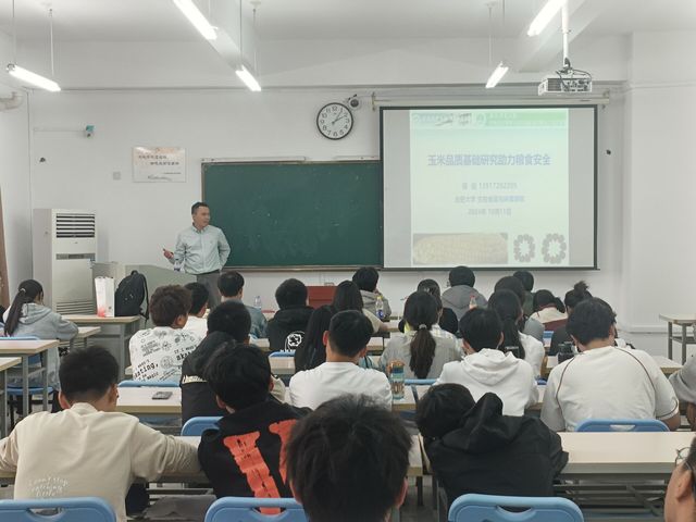 為加強(qiáng)學(xué)校與校友之間的聯(lián)系,分發(fā)揮優(yōu)秀校友的示范引領(lǐng)作用,幫助學(xué)生看清自身發(fā)展方向,20241011日,生物食品與環(huán)境學(xué)院在生化樓201教室舉辦了一場以“玉米品質(zhì)基礎(chǔ)研究助力糧食安全”為主題的精彩講座。本次講座由我校杰出校友楊俊擔(dān)任主講,生物食品與環(huán)境學(xué)院黨委書記李秀娟、院團(tuán)委負(fù)責(zé)人楊林與會,22食安以及24生工3班學(xué)生參與。