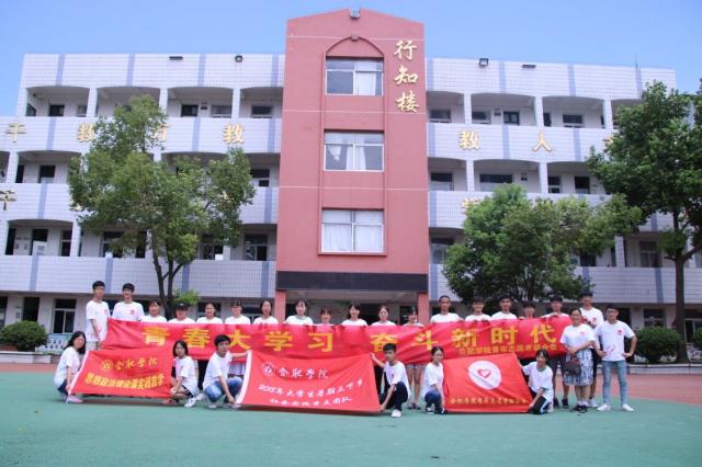 7月13日,黃瑩瑩老師和中文系黨總支書記朱濤、中文系團總支書記張愛萍帶領中文系積極響應團委號召開展2018年大學生暑期“三下鄉”社會實踐活動。來自中文系的35名“三下鄉”成員分別組成25人的筑夢者愛心支教團隊和10人的護航者調研團隊,前往六安市裕安區平橋鄉高皇學校進行愛心支教及推普扶貧活動。