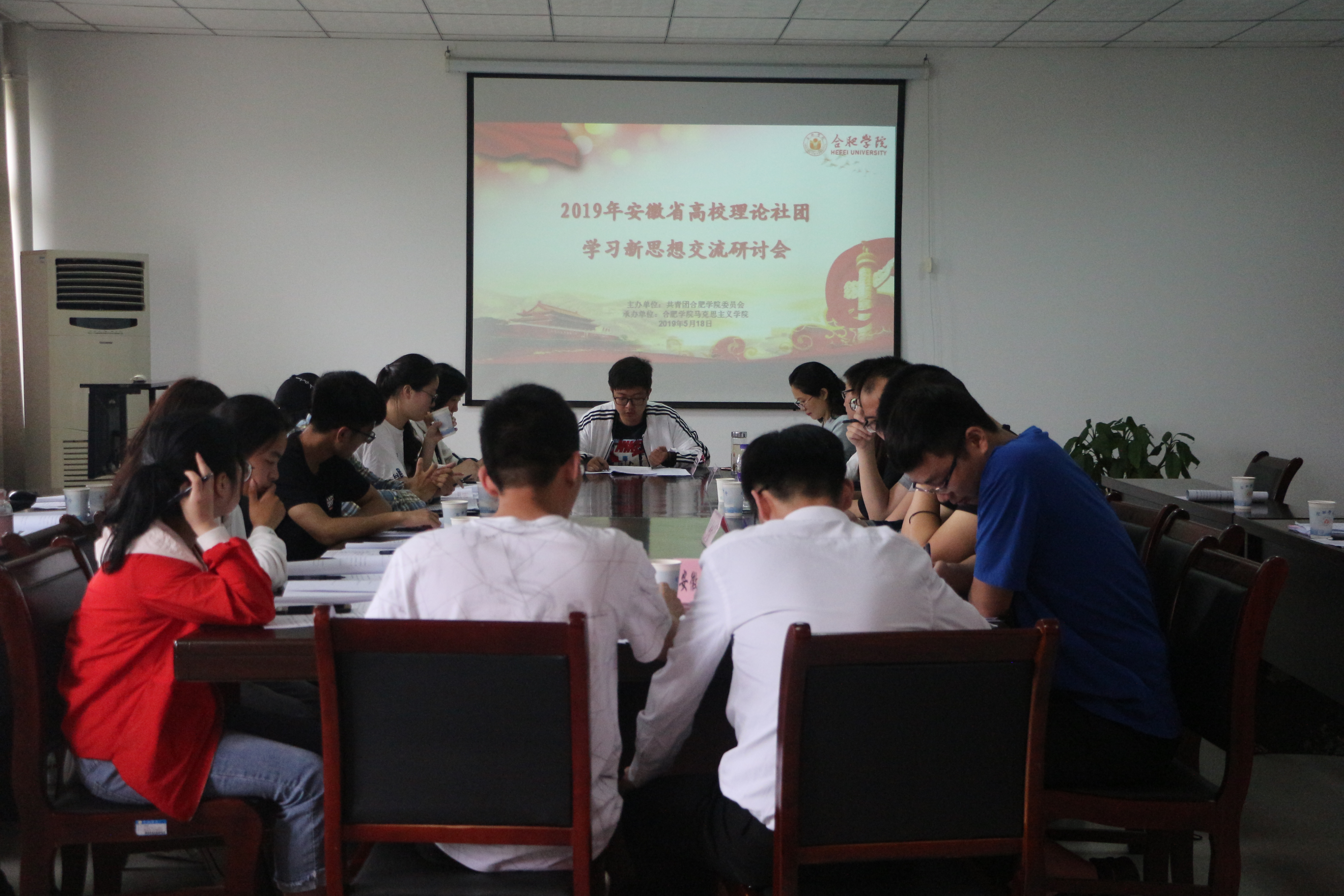 2019年5月18日,由合肥學(xué)院馬克思主義學(xué)院主辦,中國化馬克思主義理論研究協(xié)會(huì)與研習(xí)會(huì)承辦的2019年度省城高校理論社團(tuán)學(xué)習(xí)新思想交流研討會(huì)在馬克思主義學(xué)院會(huì)議室順利舉辦。來自合肥學(xué)院、安徽大學(xué)、安徽農(nóng)業(yè)大學(xué)、安徽中醫(yī)藥大學(xué)、合肥師范學(xué)院、三聯(lián)學(xué)院、安徽職業(yè)技術(shù)學(xué)院等7所高校理論社團(tuán)25名代表參會(huì)。