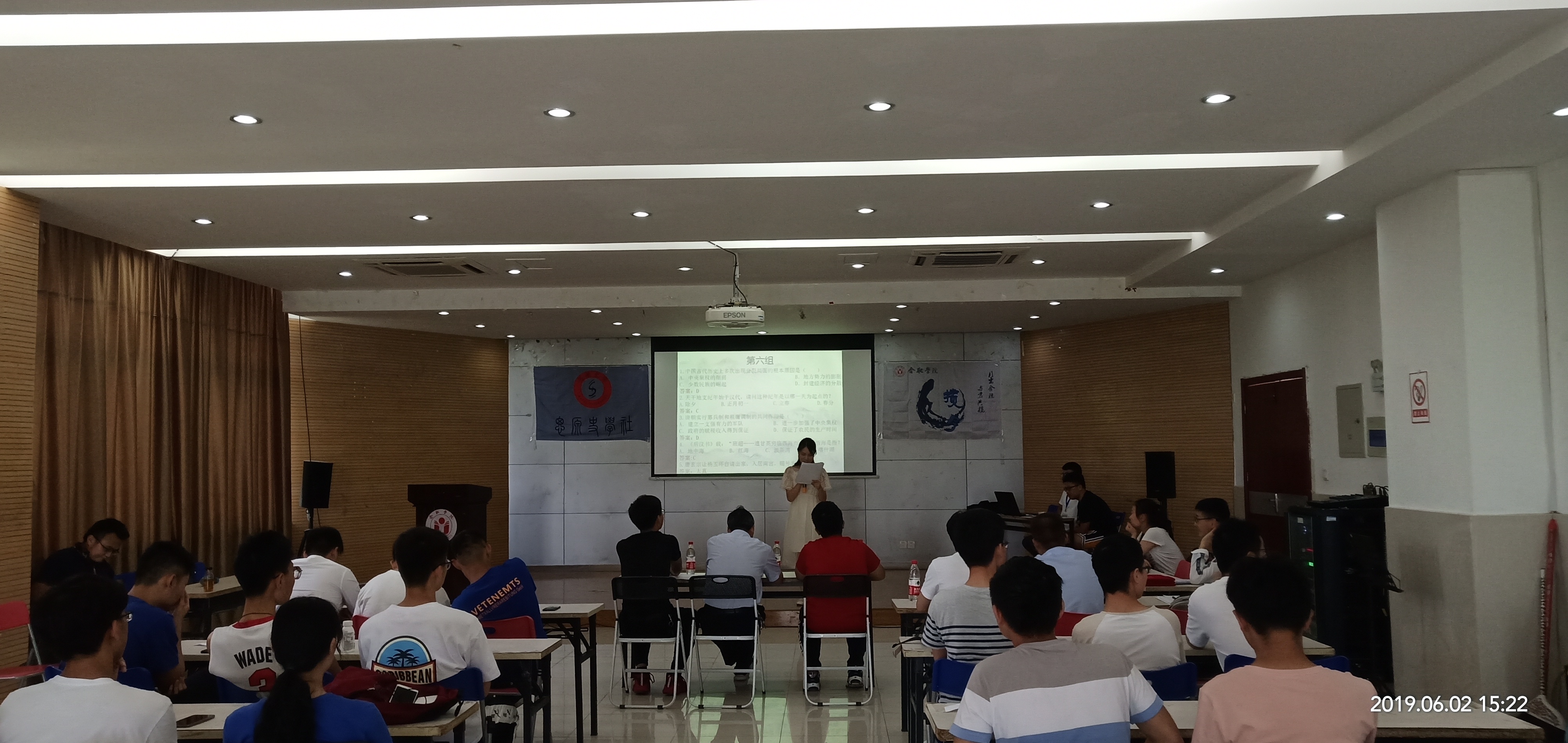 2019年6月2日下午三點(diǎn),由思源史學(xué)社與攬?jiān)略娚绯修k的第六屆歷史知識(shí)競(jìng)賽決賽在大學(xué)生活動(dòng)中心室2順利進(jìn)行,最終圓滿落幕。馬克思主義學(xué)院教學(xué)督導(dǎo)、中國特色社會(huì)主義理論與實(shí)踐研究課程負(fù)責(zé)人、思源史學(xué)社指導(dǎo)老師姜從山,學(xué)生社團(tuán)聯(lián)合會(huì)組織部部長劉建軍,攬?jiān)略娚缲?fù)責(zé)人盧冉作為本次比賽的嘉賓。