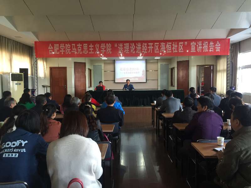 要把理論送進基層,培入人心,不僅需要專業(yè)的人講專業(yè)的課,更要把一些理論性的東西用這種鮮活事例的形式表達。在十九大“習近平新時代中國特色社會主義思想”及“砥礪奮進的五年”9個主題宣講活動中,合肥學院老師們利用課余時間,深入到各社區(qū)街道,來到群眾身邊,積極宣講黨的偉大成就,深入淺出的講解博得了在場同志的陣陣掌聲。每個社區(qū)街道少則數(shù)十人,多則幾百人前來聆聽講座。到課的社區(qū)黨員和居民們通過理論宣講活動,對國內(nèi)外形勢有了更加深刻且全面的了解,大家紛紛表示,老師們的講座內(nèi)涵豐富、資料詳實,這樣的理論政策宣講形式既把黨和國家的大政方針、也把群眾最關(guān)心的問題講解得十分明白、透徹。