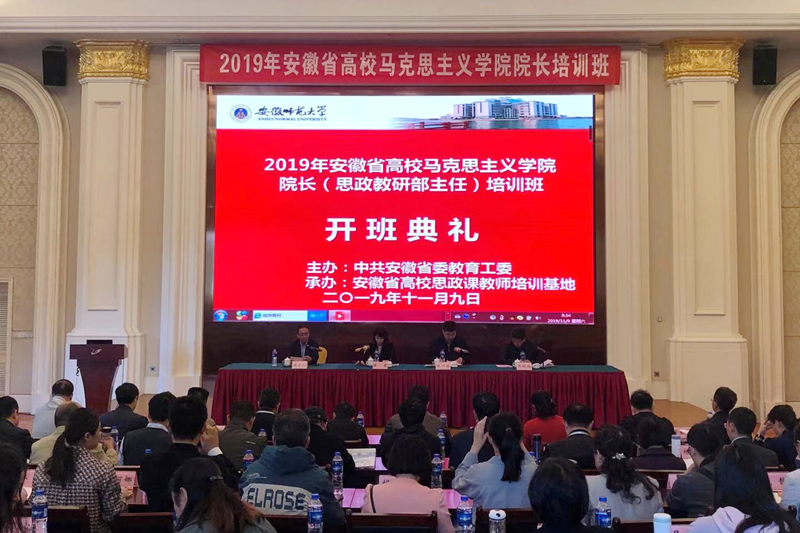 安徽師范大學黨委常委、副校長畢明福,安徽省教育廳思政處處長林興德、教育部社科司教學與出版處處長陳睿在開班典禮上分別致辭,培訓會由安徽師范大學馬克思主義學院院長高正禮教授主持。