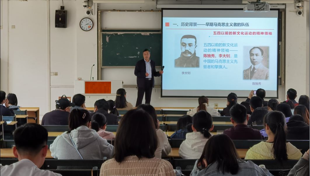 姜從山副教授的黨史報告以《中共一大及其代表的最終歸宿》為題,詳細介紹了中共一大召開的歷史背景,并以中共一大典型代表人物事跡為例,講述了中國共產黨的誕生發展歷程,展現了李大釗等老一輩革命家的高尚道德操守和崇高人格風范。報告視野開闊、內容豐富、史料翔實,既從歷史維度講道理、談規律,又從實踐維度尋初心、溯本源,以黨的奮斗歷程和偉大成就鼓舞黨員斗志;以黨的光榮傳統和優良作風堅定黨員信念,使黨員深受教育、深受啟發。(經濟與管理學院 馬克思主義學院)