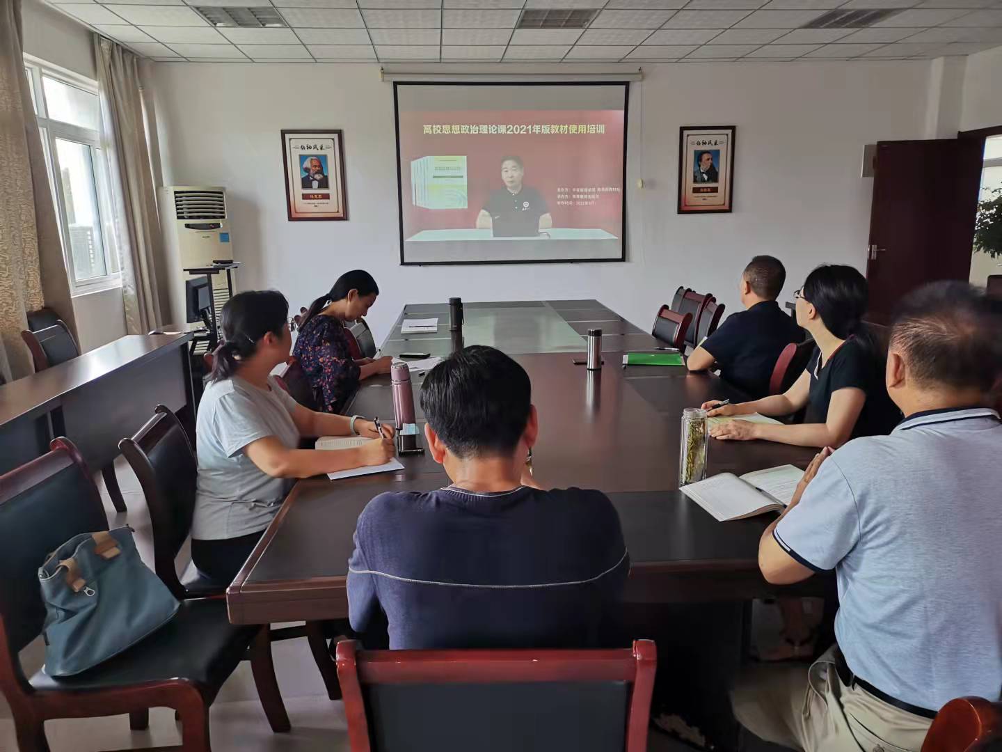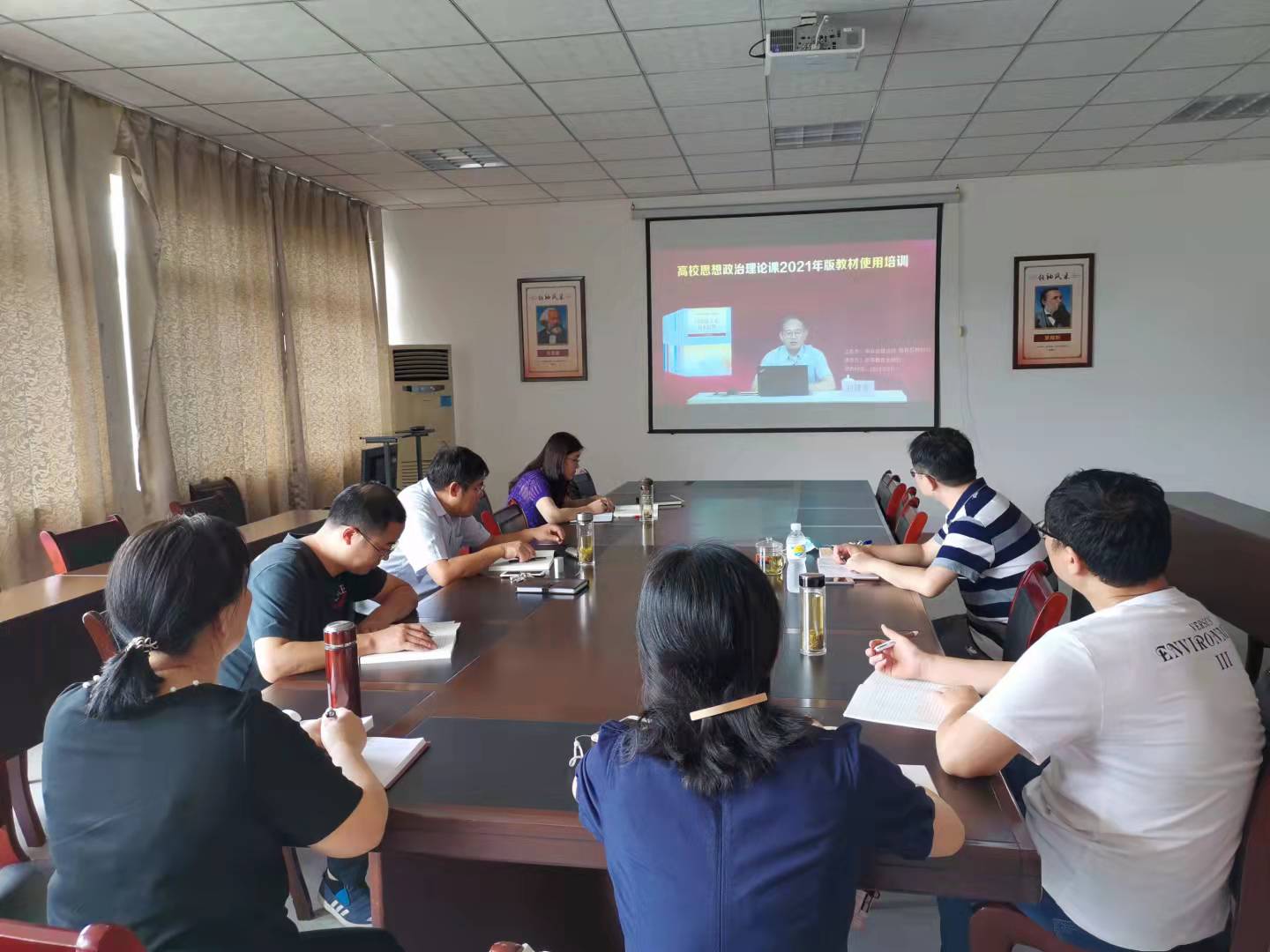 馬克思主義學院高度重視此次培訓工作,認真組織全體專兼任教師參加培訓,按時簽到,認真學習四門本科生課程:《馬克思主義基本原理》、《毛澤東思想和中國特色社會主義理論體系概論》、《中國近現代史綱要》和《思想道德與法治》,研究生課程《新時代中國特色社會主義理論與實踐》的2021年版教材的指導思想、核心內容、修訂重點和難點等內容。