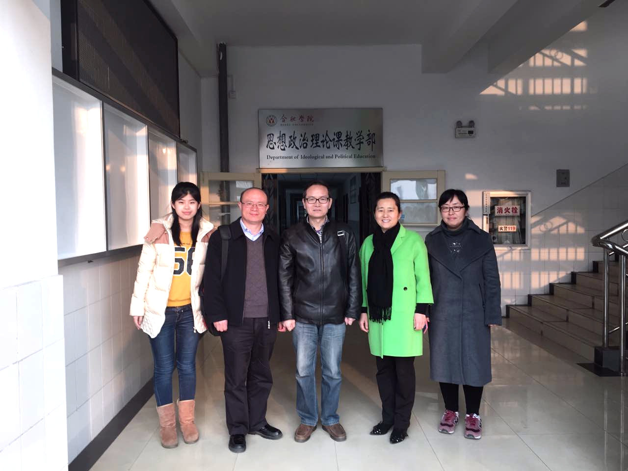 2016年2月29日下午,西安建筑科技大學思想政治教育教研室主任、校黨委統戰部長楊航征,思想政治教育教研室副主任張育民等一行來合肥學院思政部考察交流,主要考察合肥學院思政課教學改革與特色工作以及《思想道德修養與法律基礎》課和《形勢與政策》課的課程建設情況。思政部主任胡艷萍熱情接待了西安建筑科技大學同行。