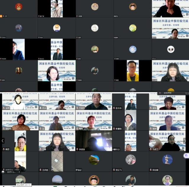 為進(jìn)一步提高馬克思主義學(xué)院教師申報(bào)國(guó)家社科基金項(xiàng)目的積極性、營(yíng)造濃厚的學(xué)術(shù)氛圍,2023年33上午馬克思主義學(xué)院邀請(qǐng)中宣部“馬克思主義理論骨干人才計(jì)劃”(“百人計(jì)劃”)首批博士山東理工大學(xué)高層次人才“雙百工程”第二層次、碩士生導(dǎo)師付安玲教授為學(xué)院教師作國(guó)家社科基金項(xiàng)目申報(bào)經(jīng)驗(yàn)交流”的學(xué)術(shù)報(bào)告。本次報(bào)告合肥學(xué)院科研處和馬克思主義學(xué)院主辦、合肥學(xué)院科協(xié)協(xié)辦,通過(guò)騰訊會(huì)議方式進(jìn)行,90余名教師聆聽了此次報(bào)告。