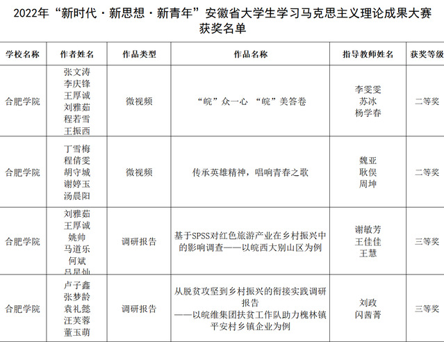 2022年“新時代·新思想·新青年”安徽省大學生學習馬克思主義理論成果大賽獲獎名單