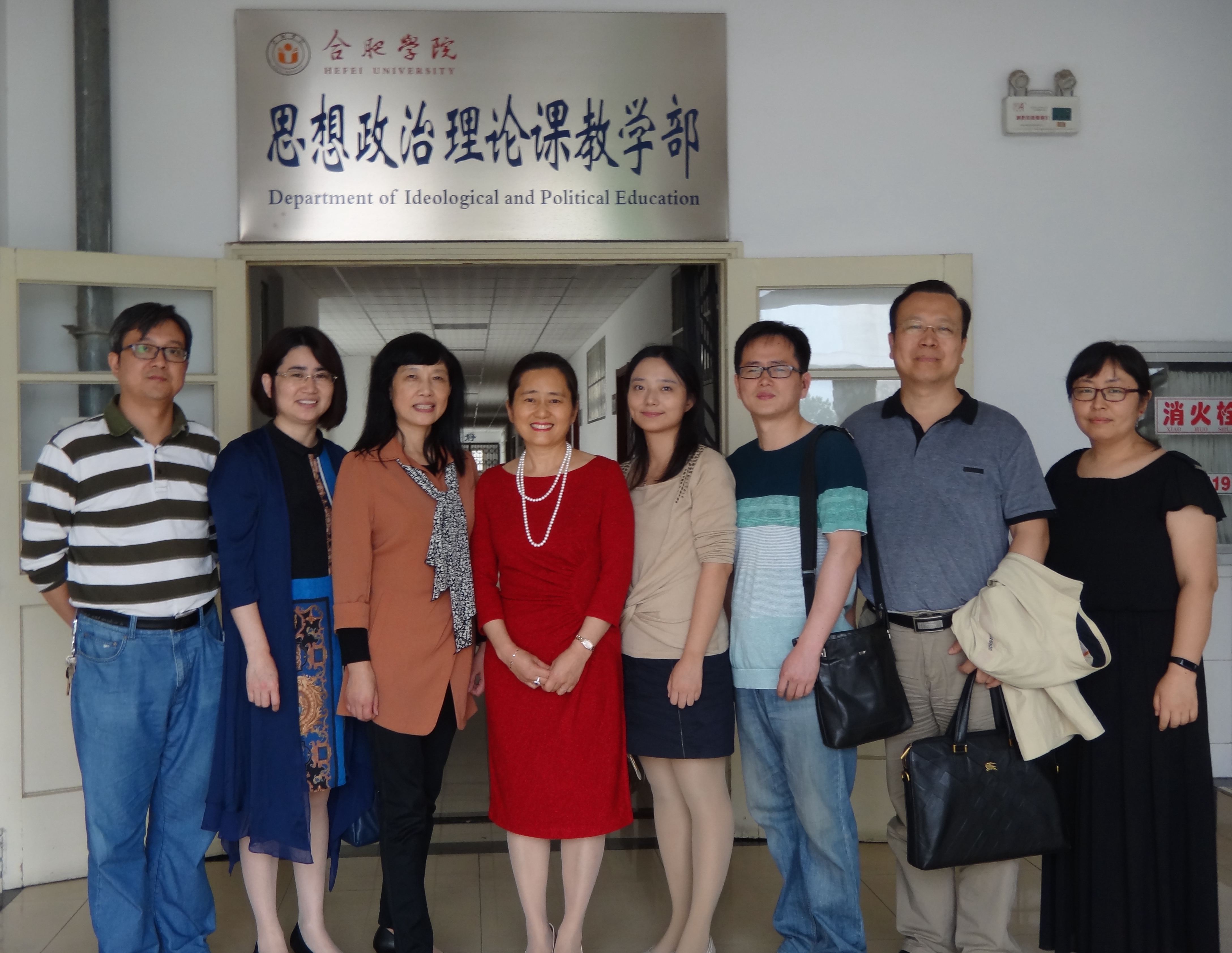2016年6月2日上午,安徽職業技術學院思政部副主任朱鳳榮、思政部教研室主任方希等4位老師會同安徽水利水電職業技術學院基礎(思政)部副主任岳五九、思政教研室主任董彩榮等一行6位老師來思政部進行考察交流,主要考察合肥學院思政課教學改革與特色工作等課程建設情況。思政部主任胡艷萍熱情接待了兩所學院的同行。