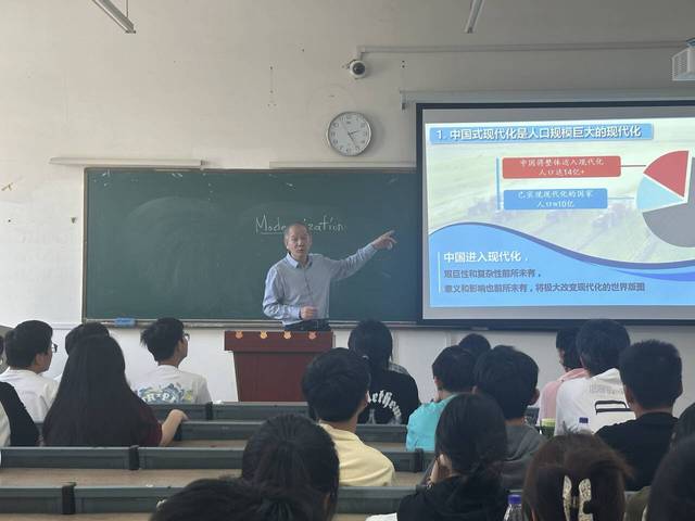 2024年5月14日下午,校黨委書記王其東以“讀懂中國式現代化”為題,為23級計算機科學與技術、22級數據科學與大數據技術(雙元制大眾班)、22無機非金屬材料工程(雙元制大眾班)、22智能制造工程(雙元制大眾班)等同學們講授本學期《形勢與政策》課,受到熱烈歡迎。