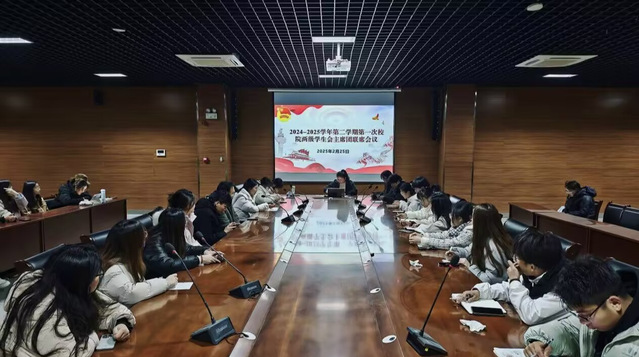 2月25日,我校學生會召開本學期首次校院學生會主席團聯席會議。校學生會主席團成員、院團委學生兼職副書記和各學院學生會執行主席參會。
