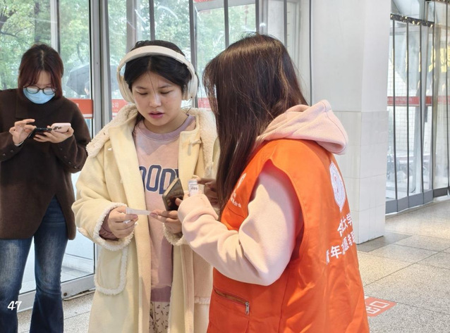 圖2 志愿者給同學(xué)們分發(fā)光盤(pán)券
