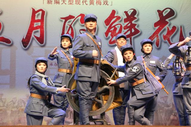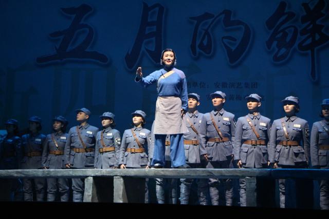 一聲鑼響,由安徽演藝集團創排出品的新編大型現代黃梅戲《五月的鮮花》拉開了表演的帷幕。運用傳統樂器交響樂相結合的形式,匯聚眾多國家級演員,采用精細講究的舞臺布置,才造就了《五月的鮮花》這一精品戲曲。全劇通過“約法三章”、“銀圓風波”、“生死欠條”、“黎明托孤”、“江邊話別”、“書院涅槃”等真實感人的戲劇場面,以顧重光、童華等一組新四軍群像的塑造,讓人們感受到那一代人身上的情感硬度和信仰純度,昭示著中國共產黨奪取全國勝利、走向輝煌的歷史必然,兌換小分隊譜寫了一曲共產黨人誠信如天的生命壯歌《五月的鮮花》把握了時代審美特征,體貼人民群眾的審美選擇,絢麗的舞美、創新的形式緊緊吸引住在場師生們的注意,現場掌聲如潮。