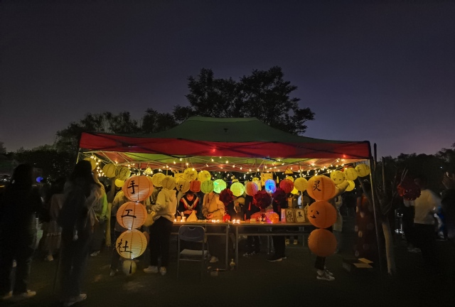 在中心湖的周圍,有著各式各樣的花燈,湖中心也有著精致的蓮花燈。這些花燈讓單調(diào)的中心湖別有一番風(fēng)味?;艄?jié)最不可錯過的環(huán)節(jié)便是有趣的猜燈謎活動,同學(xué)們積極參與,收獲滿滿。而在花燈節(jié)的表白區(qū)內(nèi),更是熱火朝天,有同學(xué)向自己的心愛之人表白,也有同學(xué)渲染氣氛,一展歌喉。在這星月交輝的夜晚,音符與燈火纏綿,大家猜燈謎,品詩句。