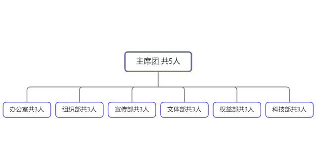 合肥大學學生會工作機構架構為“主席團+工作部門”模式,未在工作部門以上或以下設置中心項目辦公室等常設層級;主席團下設:辦公室、組織部、宣傳部、文體部、權益部、科技部共六個部門。