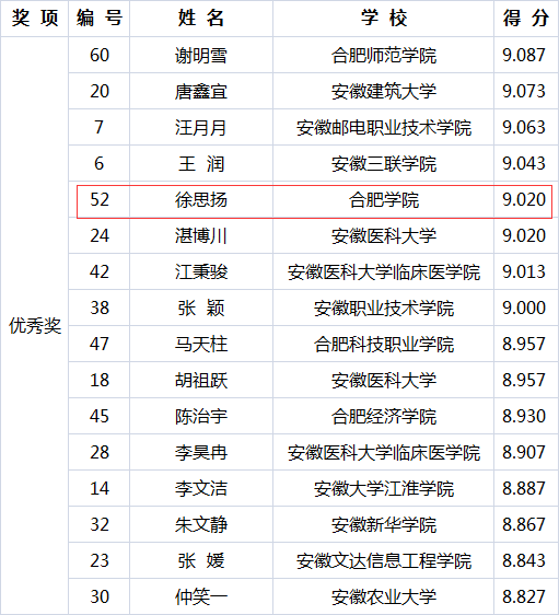為慶祝中國共產黨成立100周年,大力弘揚中華優秀傳統文化,充分展示近年來大學生文化活動的豐碩成果,中共合肥市委宣傳部、共青團合肥市委員會聯合舉辦了2021合肥大學生文化藝術季活動,我校學子踴躍參加,積極報送作品。日前,獲獎結果公示,我校學子共獲得獎項7項。