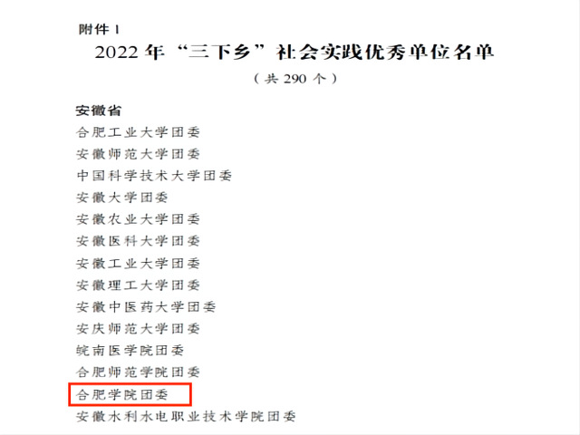 合肥學院團委榮獲全國暑期“三下鄉”社會實踐優秀單位