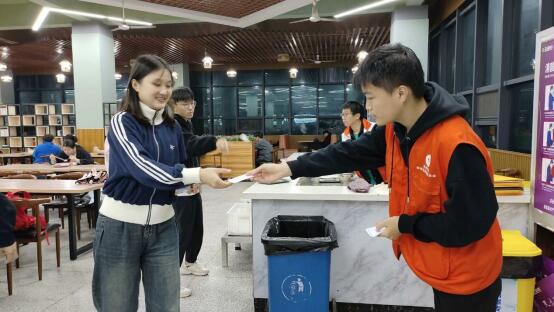 為培養我校學生珍惜糧食的良好習慣,促進節約型校園的形成,我校青年志愿者聯合會組織開展了光盤行動特色活動。活動通過集券兌獎的獎勵機制,給在食堂就餐且達成光盤行動的同學發放光盤券,以此鼓勵同學們光盤每一餐,餐餐不浪費,養成節約糧食的好習慣?;顒娱_始之后,我校青年學子爭做榜樣,從自身做起,食堂收餐臺處的“光盤”文明蔚然成風。