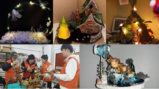 為弘揚環保理念,提高學生的動手能力和創新能力,我校開展了“變廢為寶,實踐于行”的藝術創作活動。同學們利用“廢舊物品”,根據舊物特性進行改造,充分發揮自己的奇思妙想,從構思、選材、美學設計、制作可行性、成品實用性方面綜合考慮,將落葉、塑料瓶、果皮、快遞紙箱等廢舊物品進行二次創作,改造趣味十足的落葉帽子、精美巧妙的花燈、五彩繽紛的風鈴等。別出心裁的作品充分展現了同學們樂于實踐的動手能力,藝術化的表現手法引領同學們發現美、創造美,在身體力行中收獲“變廢為寶”的樂趣。