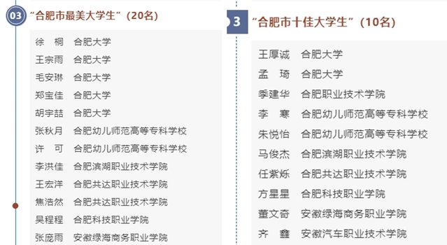 評選活動自去年11月份啟動以來,我校團委高度重視,積極組織,二級學院廣泛宣傳,在校內挖掘學生先進典型,經過個人申報、組織推薦和資格審查后,共推薦19名同學參與評選。今年,合肥市共評選出“合肥市十佳大學生”10名,“合肥市最美大學生”20名。