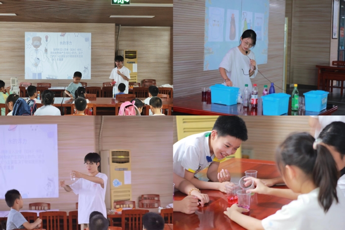 活動中,志愿者們讓小朋友自主參與科學實驗,探究實驗原理,在動手的過程中體驗科學的奧秘與樂趣,營造崇尚科學、推動創新的良好氛圍。實驗課上,志愿者通過“自制簡易凈水器”,讓小朋友們理解水凈化的基本原理,掌握簡單的凈水技術;“紫甘藍變色”實驗將紫甘藍水放入不同溶液中,觀察紫甘藍水變色的現象;“水的浮力”課程中,飄在水上的回形針揭示了水的張力內在原理,引發了小朋友們對實驗和科學的好奇心與興趣。一系列實驗,讓小朋友們連連稱贊,教室里一片歡聲笑語。