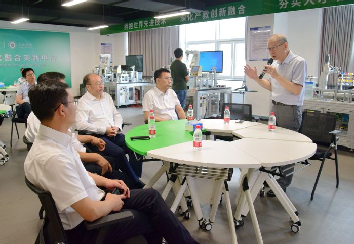 在大眾學(xué)院,張洪彬一行實(shí)地參觀調(diào)研了智能制造系統(tǒng)集成技術(shù)應(yīng)用創(chuàng)新中心、數(shù)字孿生技術(shù)及應(yīng)用工程中心和多模態(tài)工業(yè)設(shè)備狀態(tài)監(jiān)測(cè)實(shí)驗(yàn)室,認(rèn)真聽取了大眾學(xué)院建設(shè)發(fā)展情況,充分肯定了大眾學(xué)院在產(chǎn)教融合和專業(yè)、就業(yè)、產(chǎn)業(yè)“三業(yè)一體”應(yīng)用型人才培養(yǎng)方面取得的成果,鼓勵(lì)學(xué)院凝練特色,創(chuàng)新發(fā)展思路,加強(qiáng)校企協(xié)同育人,切實(shí)提升服務(wù)地方經(jīng)濟(jì)社會(huì)發(fā)展的能力和水平。