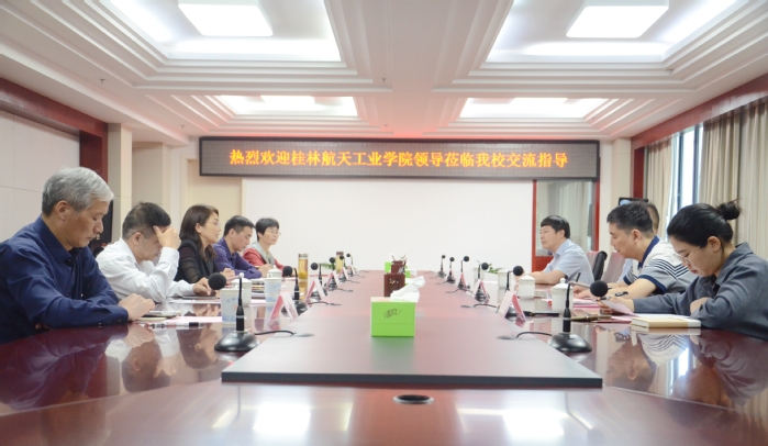 5月11日,桂林航天工業學院副校長胡澤民一行來我校調研交流,調研座談會在行政樓九樓東會議室舉行,副校長陳秀出席并主持會議,發展規劃處處長繆群道、教學質量監控與評估處處長余國江、黨政辦副主任毛小芳、教務處副處長儲忠等參加會議。