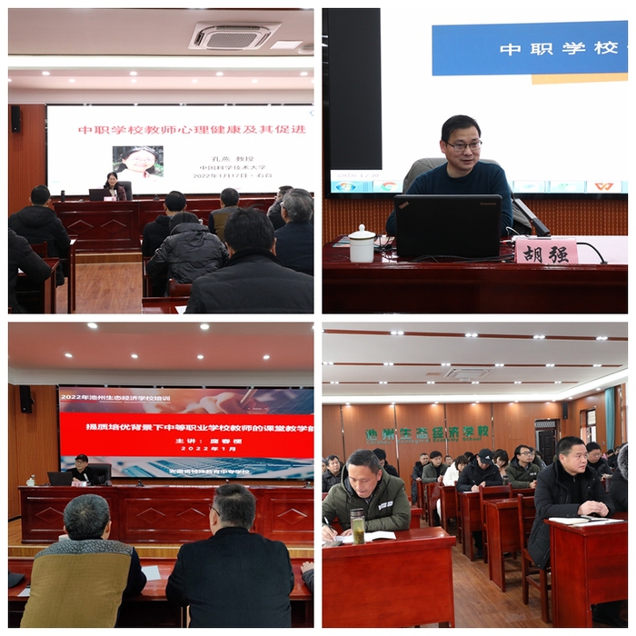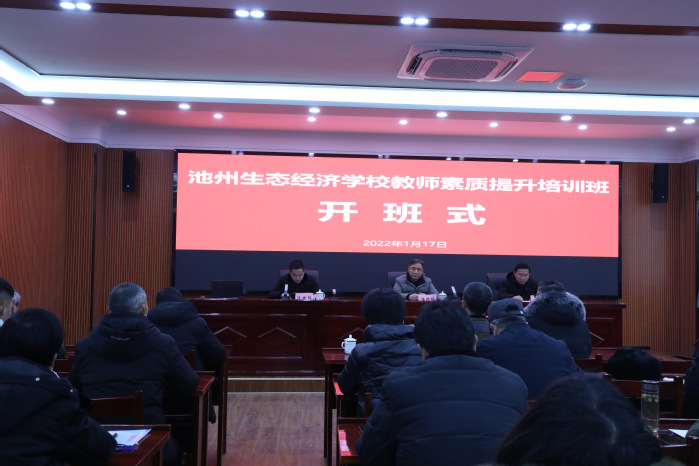 2022年1月17日上午8點半在石臺縣池州生態經濟學校舉行了簡短的開班儀式。我校繼續教育學院院長伍德勤、石臺縣委教體工委委員舒其平、池州生態經濟學校校長汪世聯出席開班式并講話。全縣60余名職教教師參加了本次培訓。