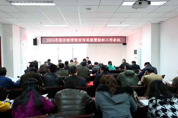 3月25日,2016年度合肥學院宣傳思想暨組織工作會議在我校行政樓一樓會議室順利召開。校黨委委員、宣傳部統戰部長劉樟樹、組織部部長張宇建及各黨總支書記、團總支書記、直屬支部負責人、院直各部門負責人出席會議。會議由宣傳統戰部長劉樟樹主持。