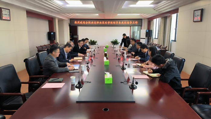 4月10日下午,合肥共達職業技術學院黨委書記許緒榮一行來校調研“一站式”學生社區綜合管理模式建設,我校在行政樓九樓東會議室召開調研座談會,黨委書記王其東、黨委副書記劉建中出席,黨委組織部、黨委宣傳統戰部、黨委學生工作部等相關部門主要負責人參加會議。