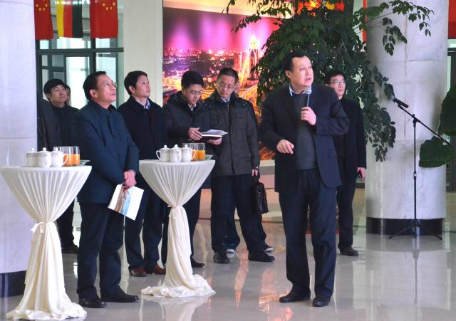 蔡敬民首先介紹了學校發展歷程和學校圍繞應用型人才培養開展系列教育教學改革的做法經驗和成果。隨后,蔡敬民回顧了李克強總理和默克爾視察學校時的情景,并詳細介紹了中德教育合作示范基地建設方案和目前項目進展情況。他表示,“十三五”期間,學校將認真貫徹落實李克強總理指示精神,以“中德教育合作示范基地”建設為契機,在國務院和省市黨委政府的領導下,通過六個平臺的建設,將學校整體建成中德教育合作示范校,使學校成為中德應用型高等教育領域合作發展的示范基地、中德企業技術創新與人力資源支撐的示范基地、中德青年交流的示范基地。