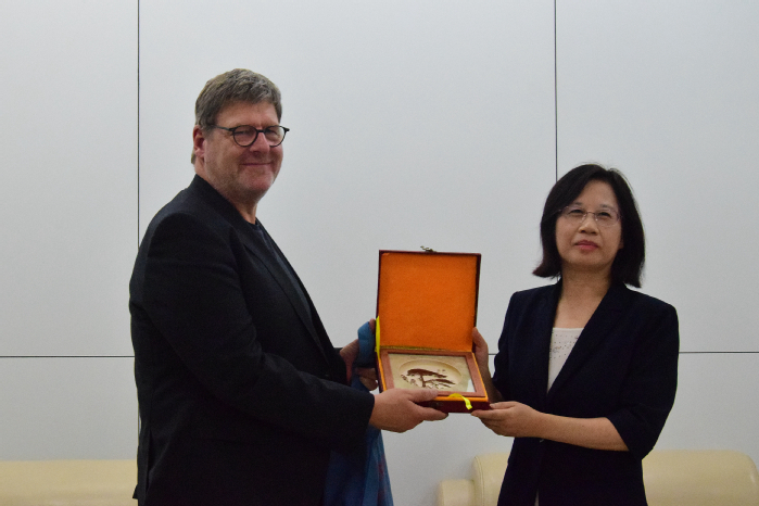 院長吳春梅在圖書館貴賓室會見來賓,副院長陳秀、國際交流合作處、大眾學院負責人陪同,雙方就加強雙邊合作與大眾學院建設達成系列共識。