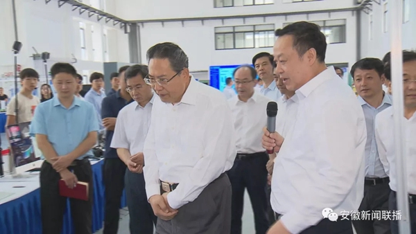 隨后,李錦斌來到科技創新大樓,參觀合肥學院教育教學改革和科技創新成果展。得知該校通過創新教育理念、深化教學改革,變知識輸入導向為知識輸出導向、變學科導向為專業導向、變學術邏輯體系為技術邏輯體系,探索出應用型大學建設的合肥模式時,李錦斌十分高興。他說,合肥學院是省內一流、產教融合的高水平地方應用型大學,要認真總結教育教學改革經驗,努力培養更多高素質應用型人才。駐足工業設計、農產品包裝設計展臺前,李錦斌看特色產品、問設計思路、談市場前景,對“企業主體、項目驅動、真題真做、市場檢驗”的產教融合模式表示贊許,勉勵廣大師生瞄準市場需求,敢于創新,善于創造,勇于創業,把更多成果轉化為生產力,促進經濟轉型升級。新能源應用技術、智能控制技術、食品制造關鍵技術……一項項應用技術亮點紛呈、一款款特色產品琳瑯滿目,集中展示了合肥學院在科技創新及成果轉化方面取得的顯著成績。李錦斌一邊走一邊看,一邊聽一邊問,要求既寫論文,也創產品,既要把論文寫在江淮大地上,也要把科技成果應用在實現現代化的偉大事業中。