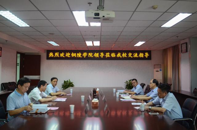 72日,銅陵學院副校長夏美武、科研處處長張寒生、財務處處長劉晨一行來訪。合肥學院黨委副書記劉建中在行政樓八樓東會議室熱情接待來賓。研究生處處長伍德勤、科技處副處長汪潘義陪同與會。
