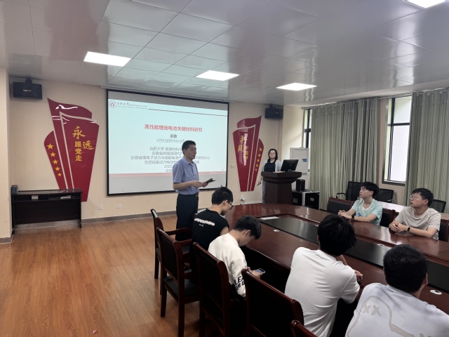 2025年6月3日下午,合肥大學(xué)2025年研究生學(xué)術(shù)沙龍系列講座第十四期活動在能源材料與化工學(xué)院學(xué)術(shù)會議室成功舉辦。本次活動材化學(xué)院共組織了三場學(xué)術(shù)報告會。安徽省領(lǐng)軍人才特聘教授、安徽省學(xué)科(專業(yè))帶頭人、材化學(xué)院新能源材料與器件專業(yè)主任梁鑫做了題為“高性能鋰硫電池關(guān)鍵材料研究”的主題報告。本次學(xué)術(shù)活動由能源材料與化工學(xué)院副院長鄧崇海教授主持。
