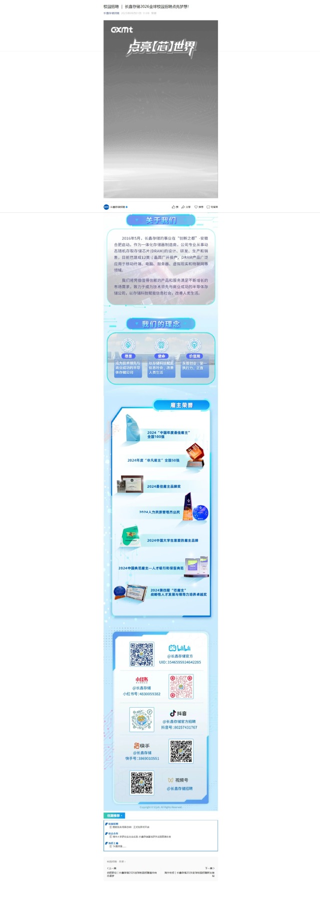 校園招聘 | 長鑫存儲2026全球校園招聘點亮夢想!