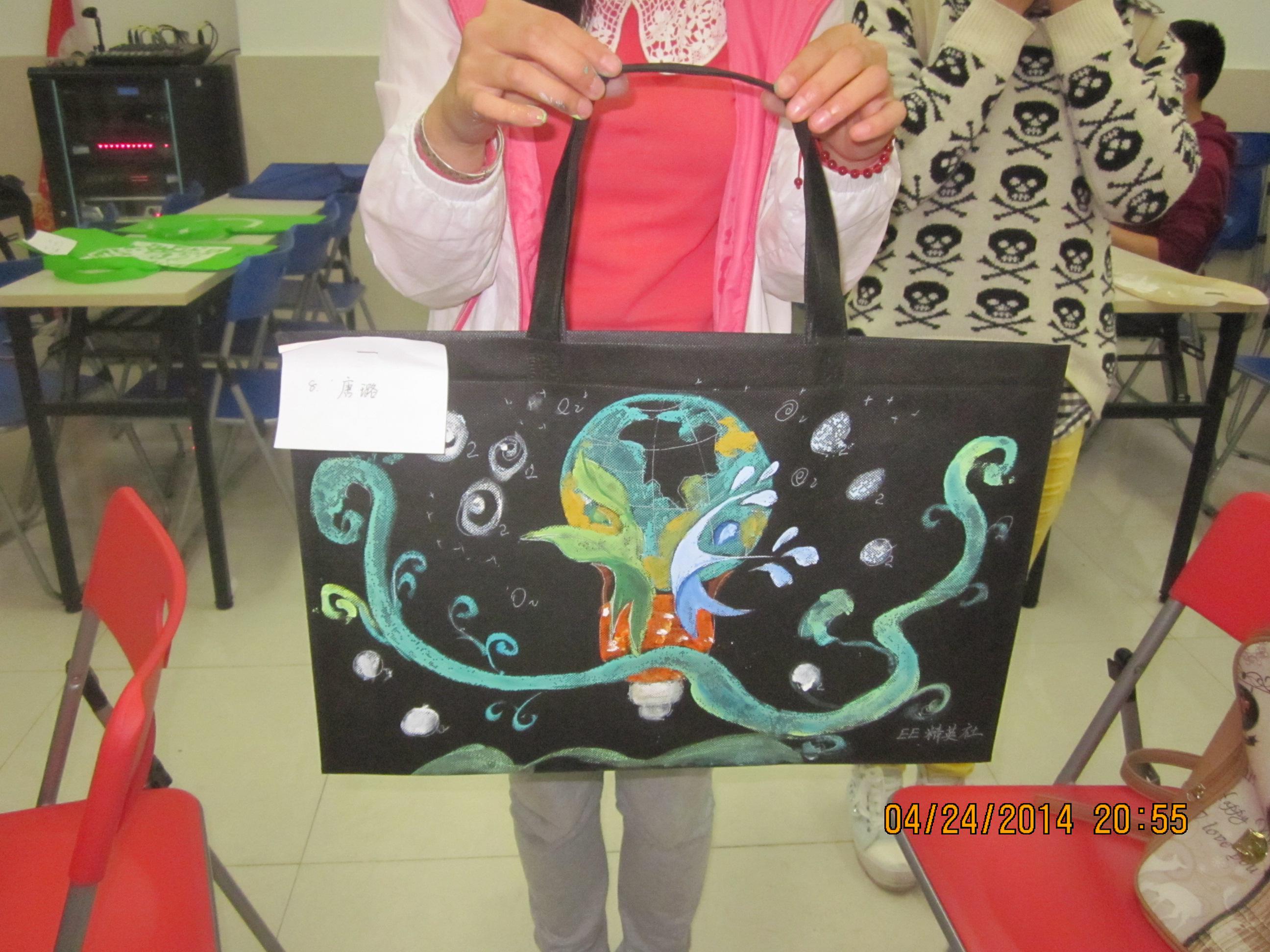 研究生EE精英社環保袋DIY涂鴉大賽于4月24日在大學生活動中心第二活動室圓滿落幕,出席本次大賽的評委嘉賓有大學生社團聯合會主席張揚、藝術設計系學生會主席王明、模特協會前會長楊智萍以及EE精英社前會長邴常遠。