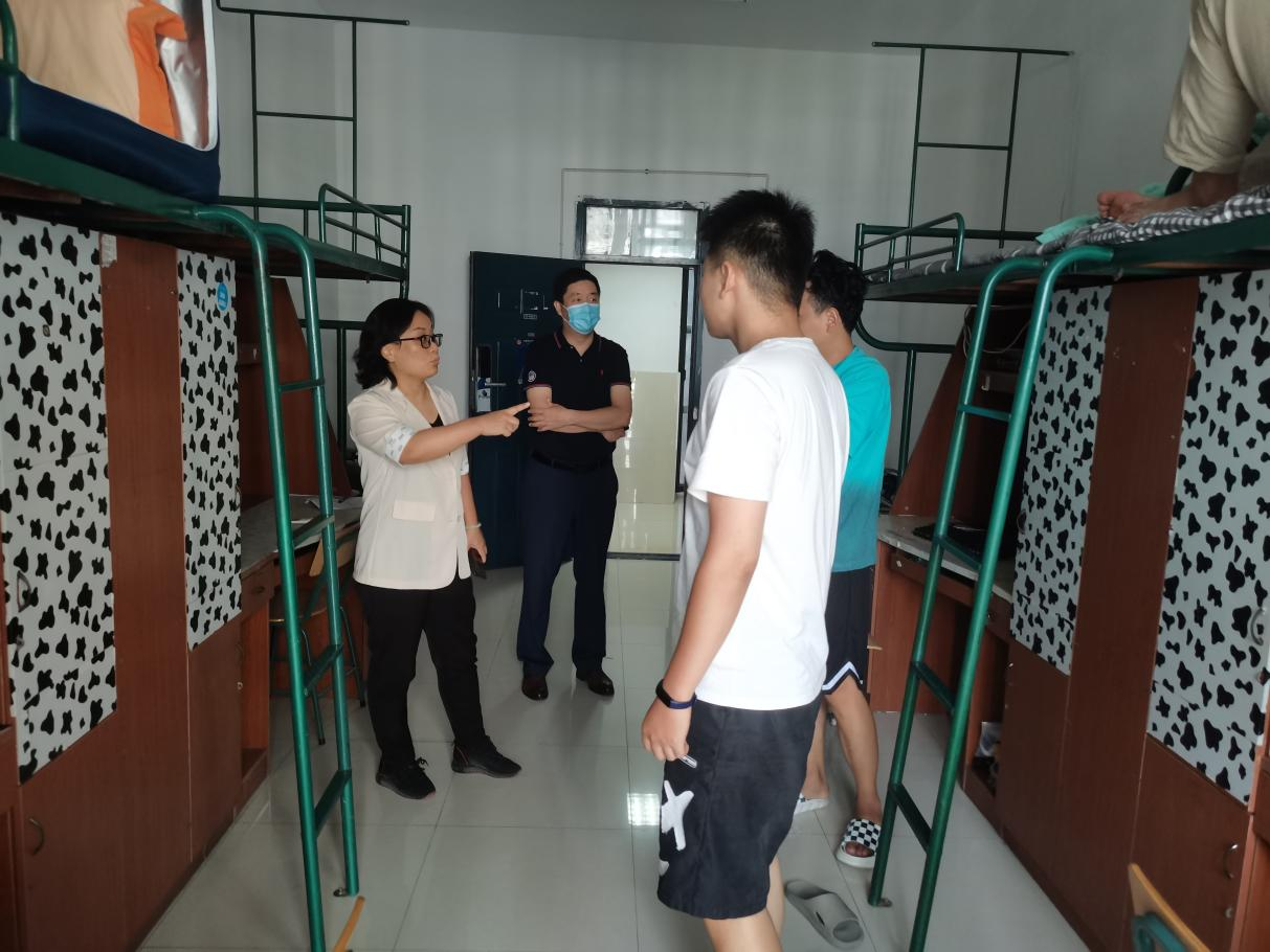 在走訪宿舍的過程中,葛春梅一行首先表示歡迎新生的到來,并與新生進行親切交談,詳細了解研究生生活情況與學習規(guī)劃,囑咐新生要做好以下幾個方面:一是注意用電安全,加強安全意識,不要使用違規(guī)電器,緊繃安全閥門;二是合理規(guī)劃時間,健康生活,提高學習效率,做出科研成果;三是遵守學校疫情防控的管理規(guī)章制度,非必要不離校;四是與同學友好相處,建立良好的人際關(guān)系;五是有困難及時與老師溝通交流,尋求老師的幫助與建議。
