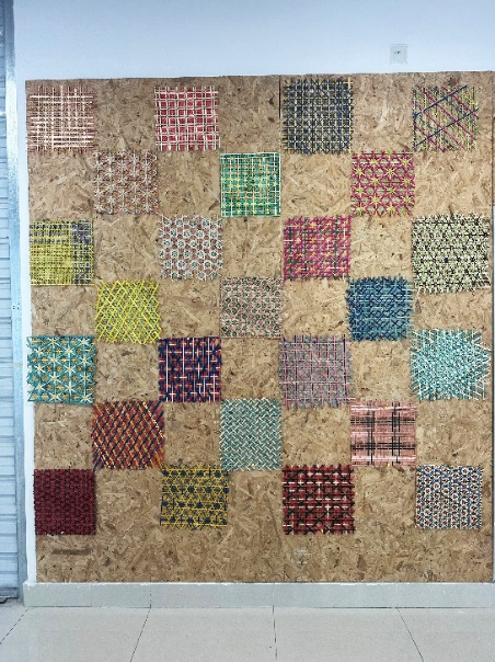 2025年4月25日,55#107公共空間化身為未來實驗室,展示藝術與科技專業《設計基礎Ⅱ》課程中竹編構成與動態圖形設計作業成果。竹編作業以竹篾為主材,通過構成原理及不同形式的編制技巧,達到的對教學中骨格結構與紋樣的設計與應用?!靶尽卑l現動態圖形設計,通過多層紙材、軸承與半立體造型設計,通過圖形的旋轉形成富有趣味的虛實光影效果,吸引眾多師生參觀互動。每幅作品均凝聚著學生的創意與心血,他們運用構成設計原理,將圖形巧妙組合,完成了對形態的創新與創造訓練,打造出突破空間維度的動態圖形互動裝置,為后續課程奠定良好基礎。