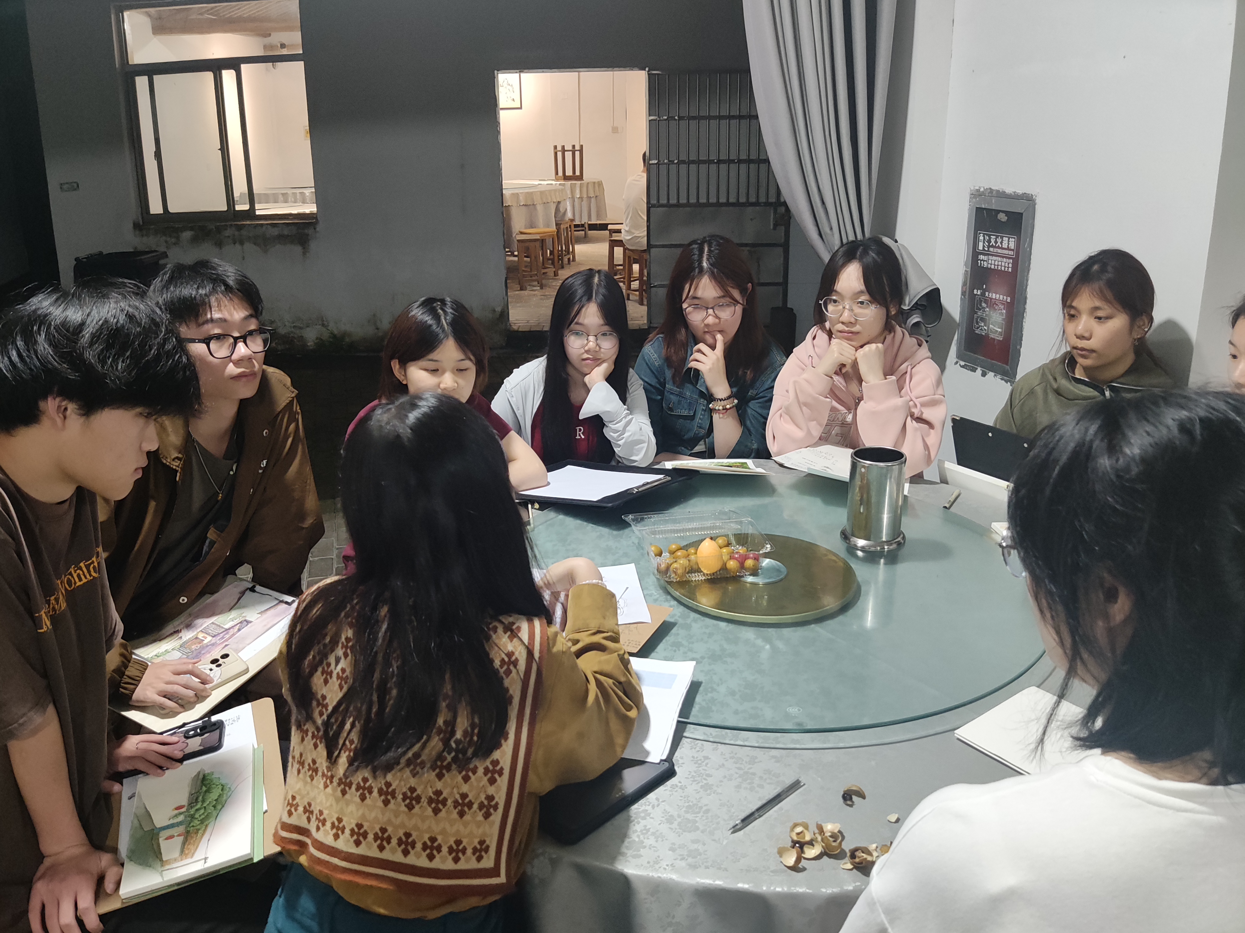 學生們的研學地點主要是碧山和西遞,同時在秀里影視村和屯溪老街進行了民俗考察。日間課程包括風景寫生和民俗調研,晚間則有教師評畫和學生民俗知識分享活動,以增強學生的實際技能和文化知識。其中,視覺傳達設計專業的學生通過《民俗考察》課程,深入了解皖南地區的文化和民俗,激發了對民俗藝術的興趣,并提升了跨文化設計能力。晚間,學生們通過分享和繪畫結合的方式,深入了解并展現皖南的民俗場景和建筑文化,加強了對該地區文化的理解和體會。