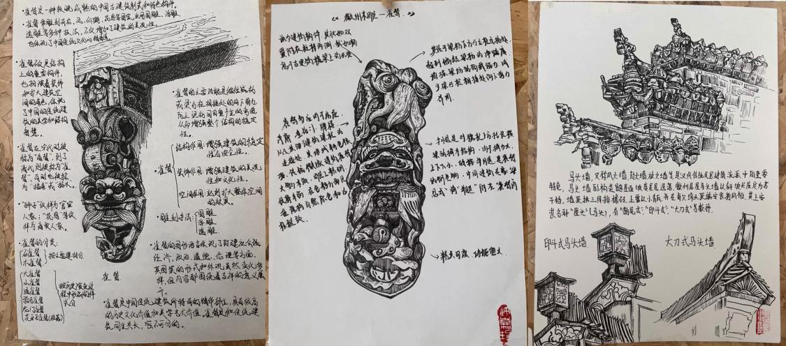 本次寫生采風活動成功結合了教育與文化探索,幫助學生在理論與實踐中達到平衡,并通過實地學習深化了對中國文化遺產的理解與欣賞,提升了他們的藝術創作與設計能力。參與活動的學生加深了對中國傳統文化的理解與尊重,增強了藝術表達和創新設計的能力。特別是視覺傳達設計專業的學生,他們的作品不僅展示了寫生繪畫技術,還通過深入的民俗文化研究,展示了對皖南徽派文化的深刻洞察。
