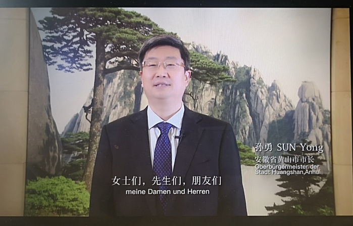 黃山與施特拉爾松德是友好城市,孫勇在視頻致辭中表示,“漢語(yǔ)橋”德國(guó)賽區(qū)決賽在施特拉爾松德市舉辦,這不僅是一場(chǎng)比賽,更是一次文化交流、文明互鑒的盛會(huì),相信通過(guò)此次比賽,會(huì)有越來(lái)越多的德國(guó)青年愛(ài)上中文、愛(ài)上中國(guó)。誠(chéng)摯邀請(qǐng)更多的德國(guó)朋友,多到黃山走一走、看一看,共同感受大美黃山的魅力、領(lǐng)略徽州文化的風(fēng)采,增進(jìn)相互友誼、暢享美好未來(lái)!