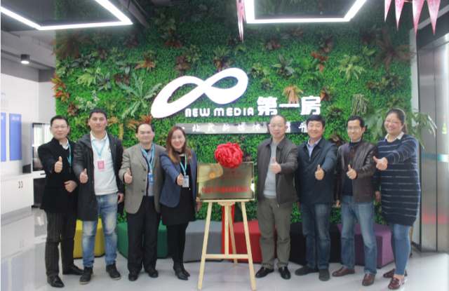 董承軍一行人走訪的第一站為“第一房”公司,一個以成為一站式新媒體營銷平臺為口號的創業企業。在會議室,企業負責人向到訪的一行人介紹了企業有關事項,中文系黨總支書記朱濤表達了對企業的認可,之后在大家的見證下舉行了中文系大學生創業合作基地揭牌儀式。